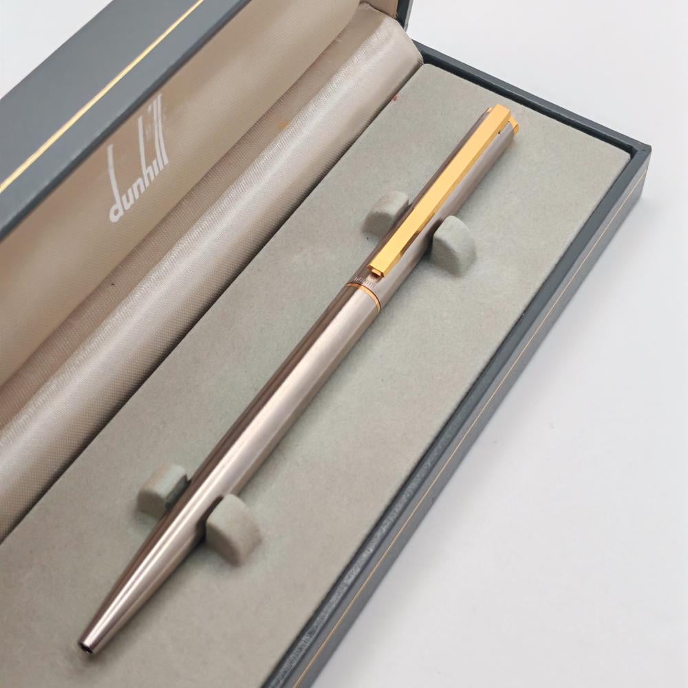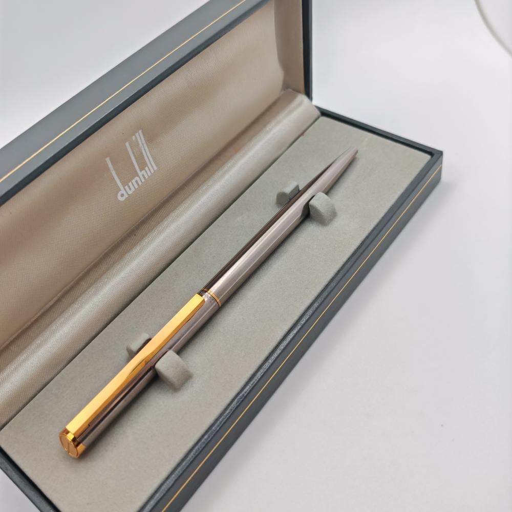 🖋️ Dunhill Gemline JTQG – القلم الفضي الفاخر بالمشبك الذهبي (جديد لم يُستخدم)