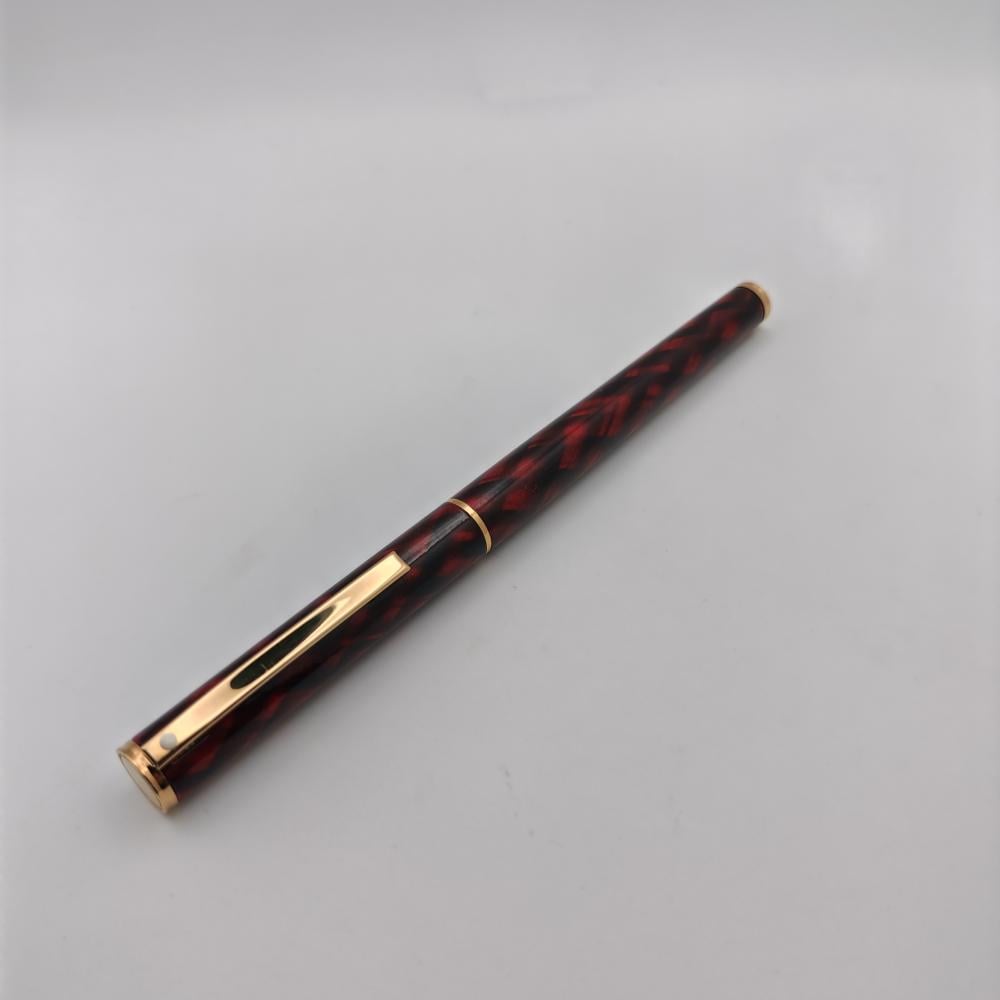 تحفة فنية من أقلام Sheaffer الكلاسيكية، إصدار Fashion II بالتصميم المميز Red Tartan الذي يجمع بين اللون الأحمر الداكن والنقوش السوداء العميقة في نمط رخامي جذاب، مزود بقطع مطلية بالذهب تضيف لمسة فخامة وأناقة خالدة.